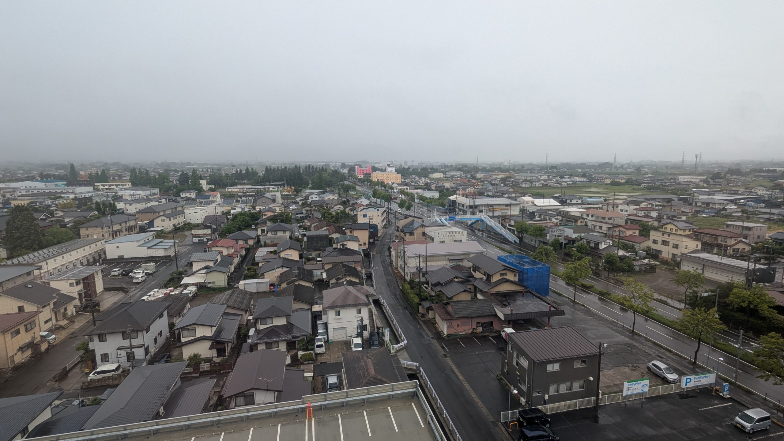 朝、昨日からの雨により路面が濡れています、しかしお昼に向けて天気予報は雨から曇りへ