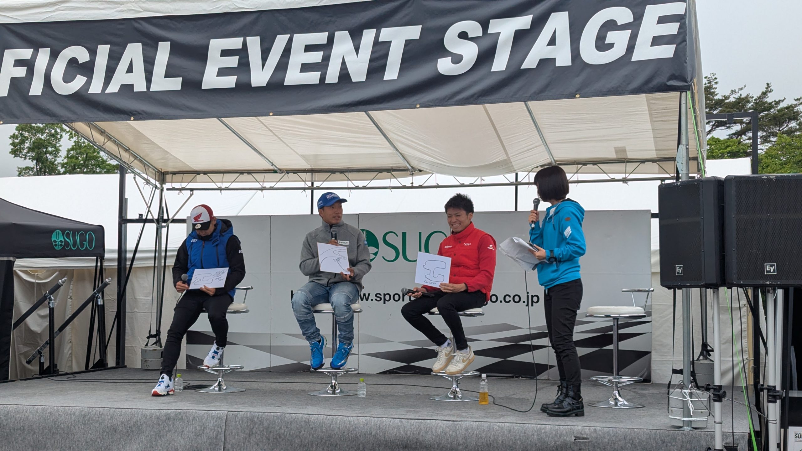 おもしろい、そしてSUGOのコースを色紙に書くイベントでは昨日の出来事をネタにした自虐ネタもあり、大いに笑かせていただきました
